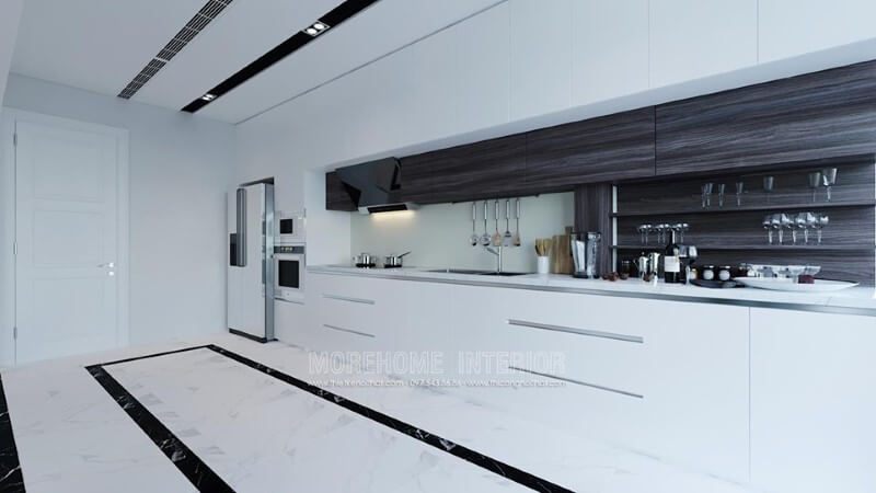 Tủ bếp biệt thự được thiết kế theo phong cách hiện đại và đạt chuẩn cao cấp.