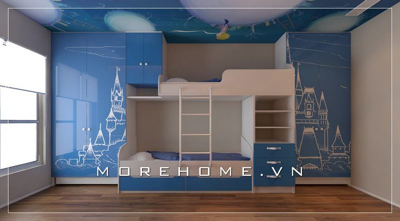 Giường tầng trẻ em đa năng kết hợp với kệ tủ quần áo sẽ giúp căn phòng trở nên sạch sẽ hơn và gọn gàng hơn.