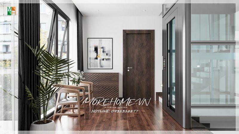Để có thể thư giãn và ngắm cảnh, thiết kế nội thất biệt thự, nhà phố cần bổ sung một khoảng không gian hành lang để đặt bộ bàn ghế nhỏ cho 2 người.